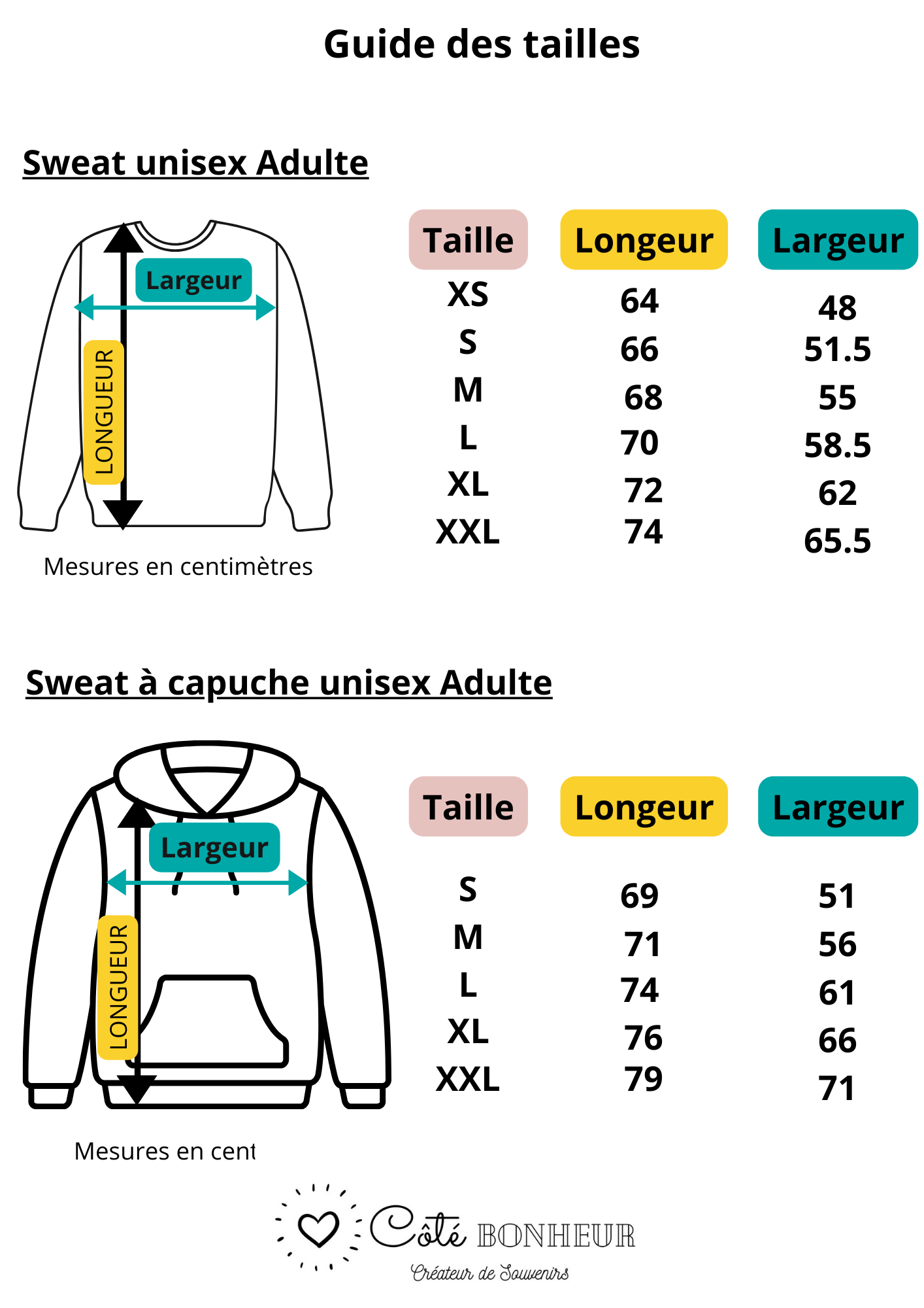Tailles : du S au 3XL (voir guide des tailles en photos).