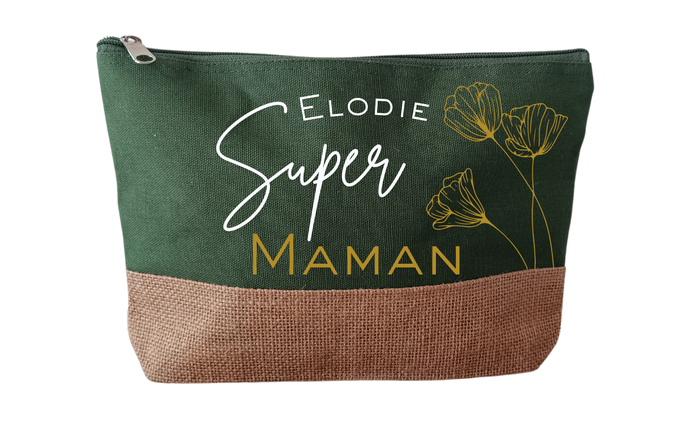 Offrez (ou offrez-vous !) une jolie trousse de beauté personnalisable, pensée pour les super mamans du quotidien ! Pratique, élégante et pleine de tendresse, cette trousse en toile résistante et fond en toile de jute naturelle est idéale pour ranger maquillage, accessoires, papiers ou petits trésors.
