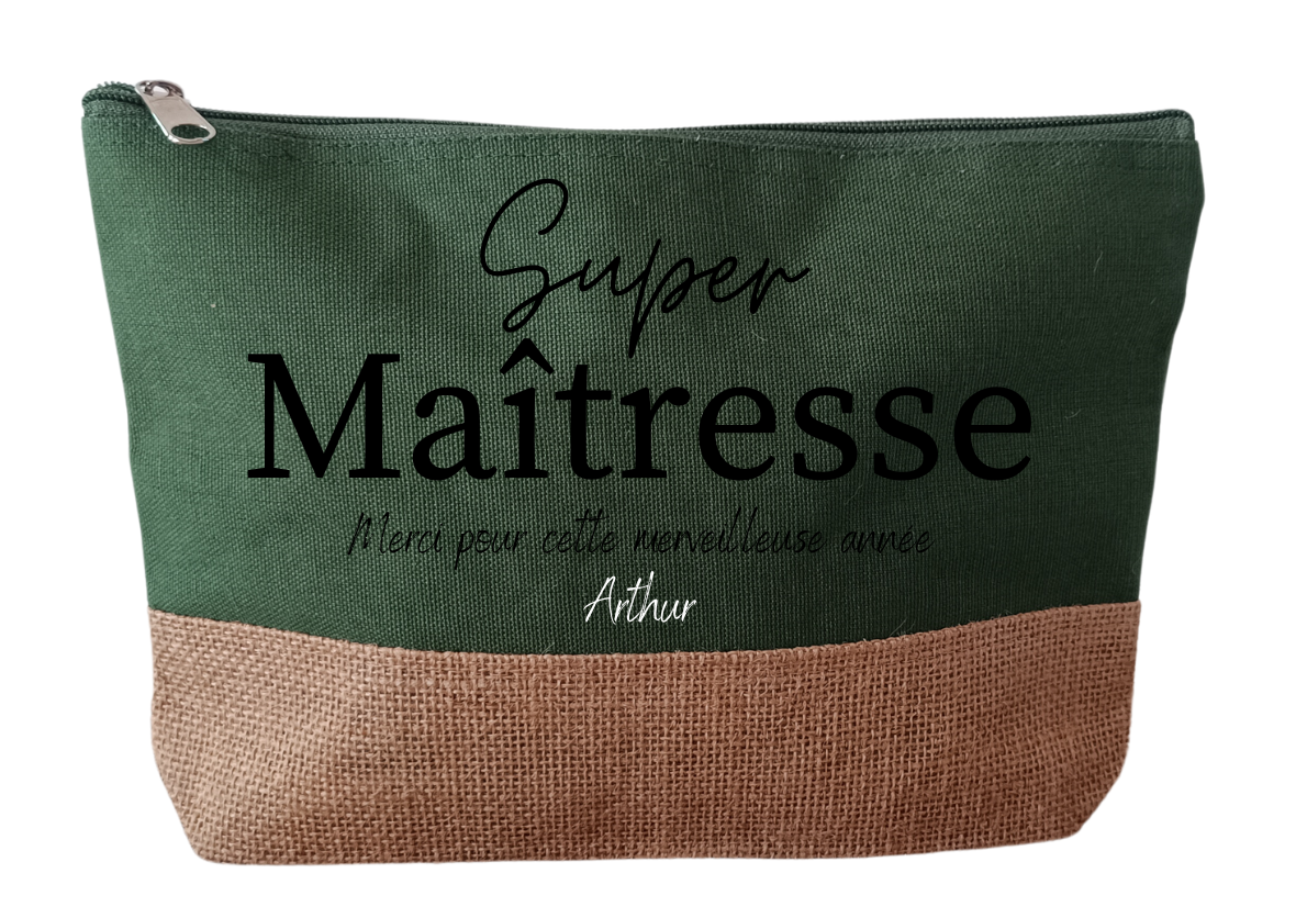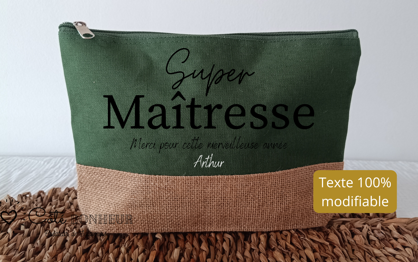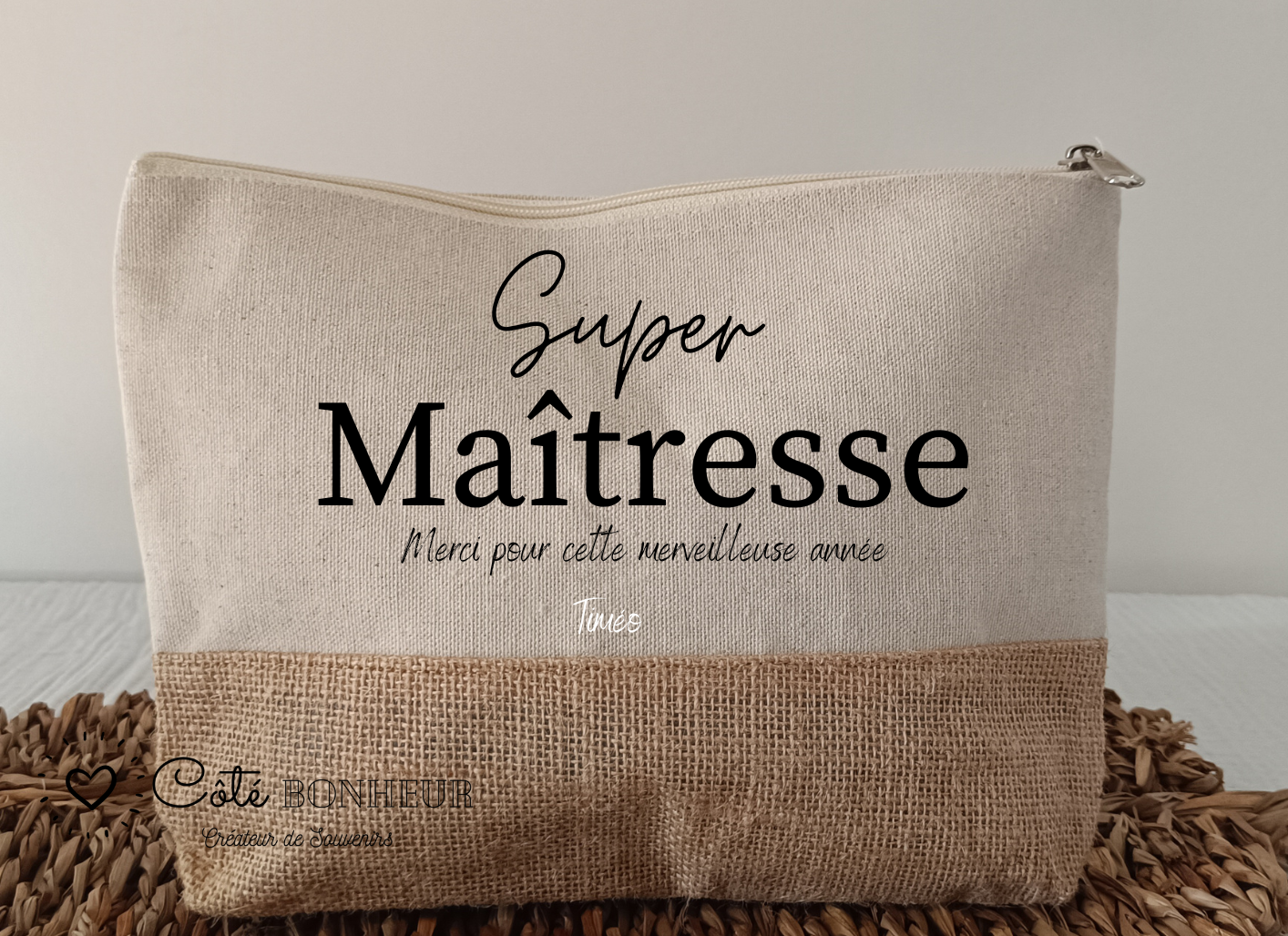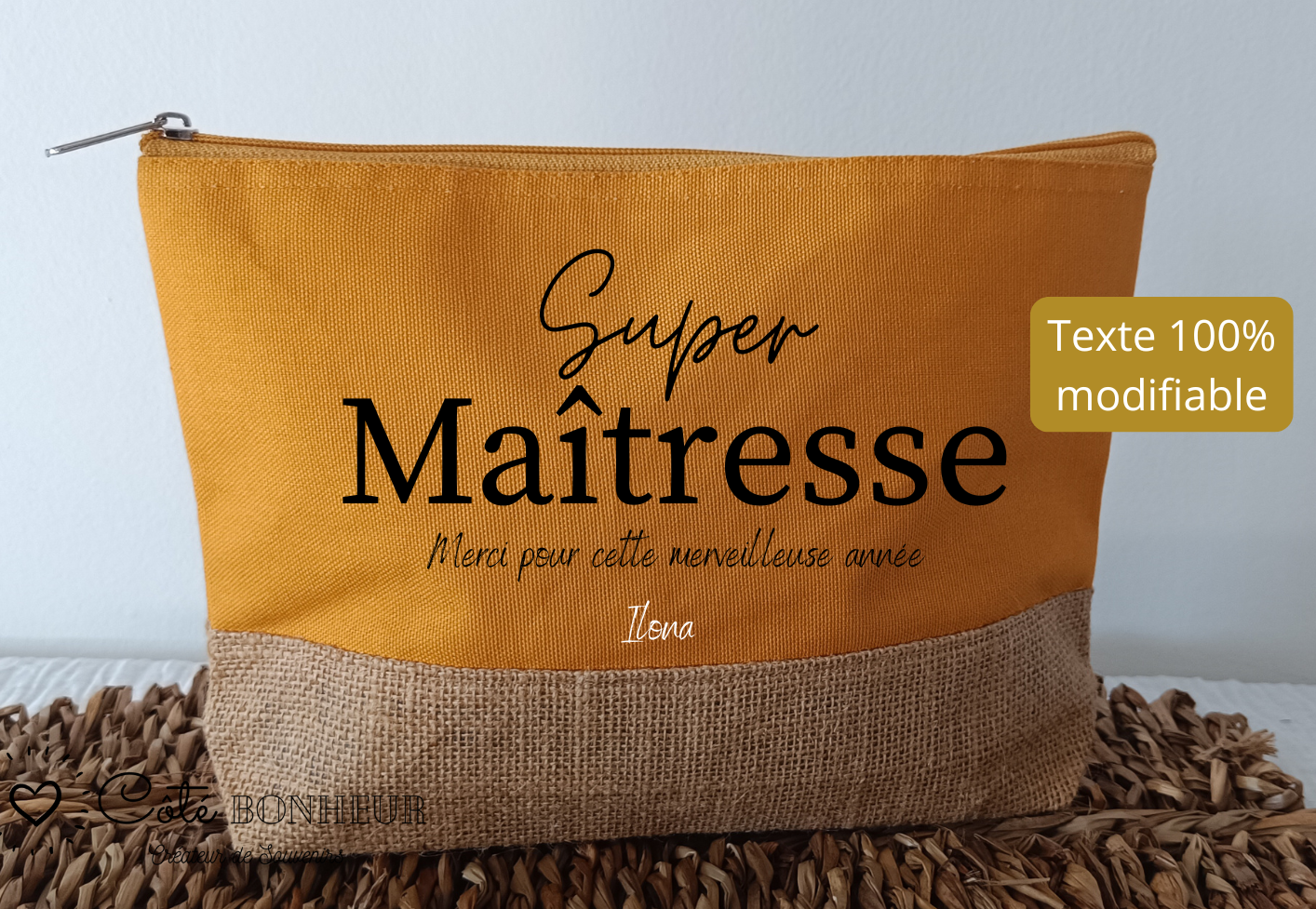 Trousse Super Maîtresse personnalisable – Cadeau de fin d’année scolaire , cadeau maîtresse personnalisé